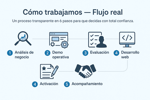 | 1. Claridad | Explicamos lo técnico en lenguaje de negocio. Sin trampas ni jerga. |