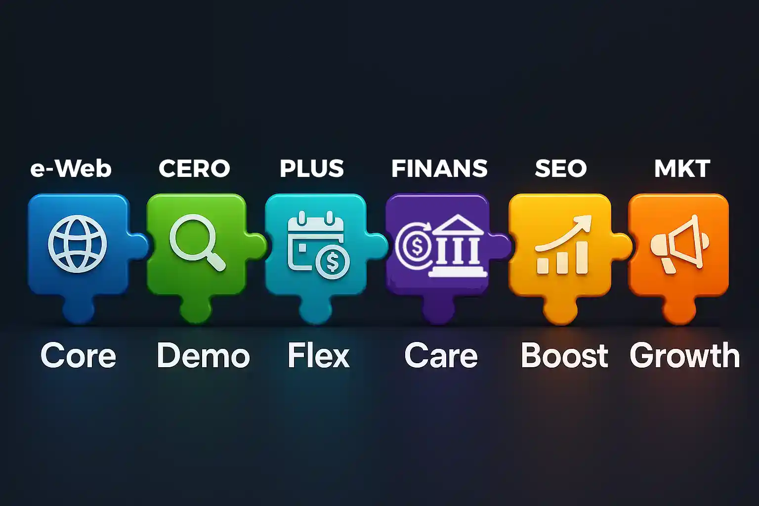 - 🔍 e-Web SEO, que optimiza visibilidad y posicionamiento.